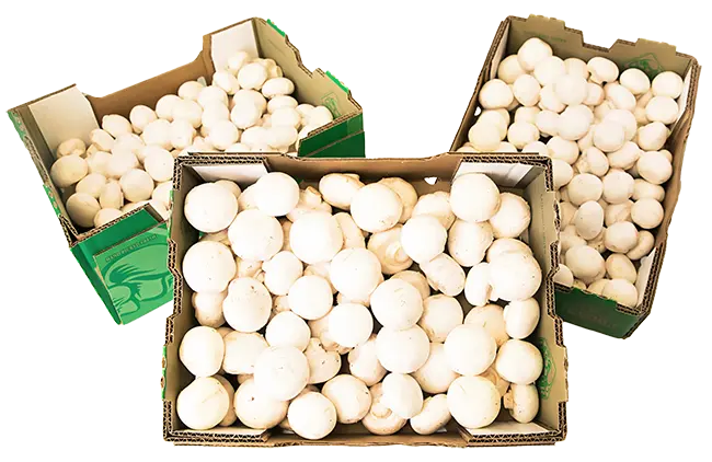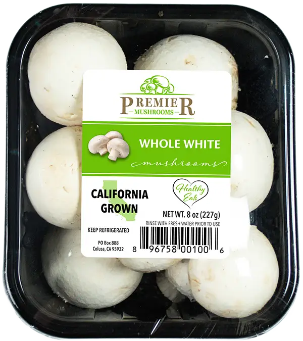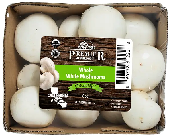 Our fresh white mushrooms are available in pre-packaged (for retail), organic and bulk (for food service) options.
